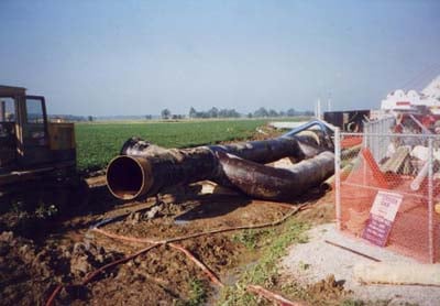 Union Gas developed their initial systems in the 60’s and 70’s and quickly implemented a regimented integrity programme, typically magnetic flux leakage instruments to physically meassure depth and size of any corrosion pits interna and external to the pipelines. These tools are commonly known as PIGs (Pipeline Inspection Gauge), and operated by independent contractors. Early designs of PIGs had 2 elastomer cups with a 90% of ID sized slotted aluminum disk between the cups. In these early days, if the slotted disk travelled the inspection damage dent-free, it was assumed the pipeline was intact. Conversely a dented disk meant an anomaly needed further investigation.
